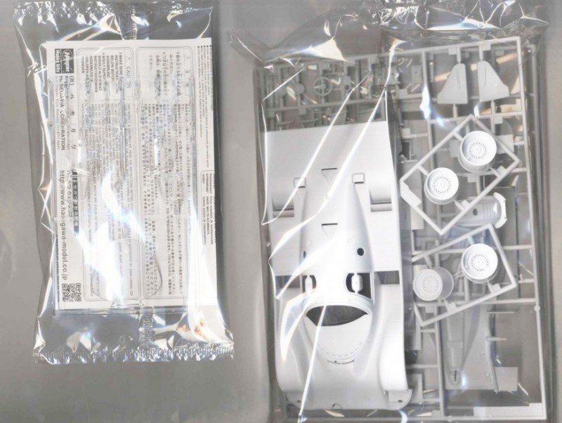 1/24 Scale Model Length: 200mm Width: 83mm elements: 61pcs White Wheels with Rubber tire. White areas of the body Clear elements included Stickers included stated in Japan